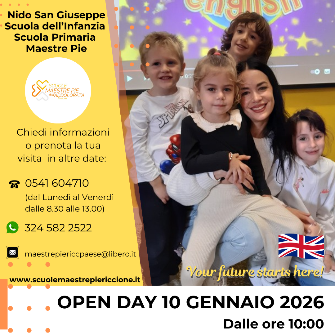 𝗢𝗣𝗘𝗡 𝗗𝗔𝗬 29 novembre 2025 - dalle ore 10:00 Non vediamo l'ora di accogliervi e di raccontarvi la nostra proposta formativa! Bilinguismo alla scuola primaria Musica d'insieme Informatica Bilblioteca Tante uscite didattiche...